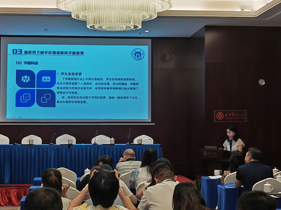 工作会议之后,由继续教育学院赵桂芝副院长主持,会议进行了三个业务专题培训。继续教育学院招生与教务办公室主任汤晓兰、校外教学点管理办公室主任彭金生和湖南世纪超星公司刘人洋分别做了《新形势下赢博平台校外教学点教学与学籍管理》《新时代下赢博平台教学点设置与管理》;《赢博平台校外教学信息化管理系统操作》专题培训。